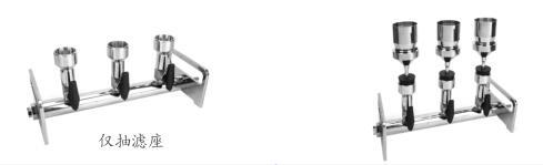 产品描述 | 仅抽滤座 | 分别配备3 个100、300、500ml 不锈钢漏斗,150、300、500ml 磁式漏斗,250ml 玻璃及滤网式玻璃漏斗 |