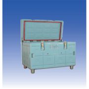 产品介绍 大型保温储运箱 * 特别适合储存转移温度敏感样品,如干冰,食物,生物样品等,可以用于储存和运输低温样品。 * 符合欧洲IN-IR-RRC 执行标准 * 结构坚固,有60-90mm 厚的聚氨酯泡沫隔热层,超轻材质设计。 * 包含带弹簧扣盖子,容易搬运把手,泄压阀 * 可选附件:带滚轮底盘 技术参数