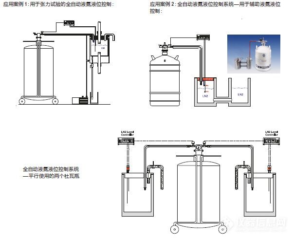 产品介绍 全自动液氮液位控制系统 杜瓦瓶中的全自动液氮液位控制系统 在很多低温应用中,例如驱动轴和套管的低温收缩安装,零部件或者是生物样品冷冻、在冷阱中使用液氮作为制冷剂、在液氮中校准传感器等等。保持液氮的液位在一个一定的水平是非常重要,KGW 液氮液位控制系统能够满足这一需求。在使用液氮液位控制系统时,杜瓦瓶中高液位和低液位两个传感器来进行测量级信号反馈,杜瓦瓶中的液氮可以保持一个一定的液位水平,即两个传感器对应的液位之间。KGW 提供的液位控制系统基本上可以配套使用所有的液氮容器。 液氮液位控制系统工作原理: 如果液位下降到低位的传感器以下,那么将会有信号传送到控制系统,控制系统将会打开位于传输液氮的虹吸管和液氮储存容器中间的24v 电磁阀,通过容器内的自增压力,将会把液氮推出容器,经过转移管路最后进入杜瓦瓶中,液氮液位上浮直到液位接触到高位液位传感器为止,高位液位传感器会监测到温度降低,将信号传递给控制系统,然后会切断电磁阀的电源使得电磁阀关闭,直到液氮液位再次低于低位传感器后才会再次开启,重复进行上述步骤。 用于手动样品低温收缩流程的全自动液氮液位控制系统 通过部件低温收缩特性来进行手动或者自动的连接安装,在收缩过程中,保证充分连续的冷却是非常重要的。液氮通常被用作制冷剂来冷却收缩驱动轴或者连接套管。使用液氮液位控制系统,可保证连接安装的稳定连续和安全。 订货信息 订货号:2760-35 用于手动样品低温收缩流程的全自动液氮液位控制系统,包含杜瓦瓶、盖子、出气管路和35L 的液氮储存罐。 用于冷阱的全自动液氮液位控制系统 为了保证冷阱的冷凝效果,保持杜瓦瓶里液氮的液位是非常重要的。只有保证有效的液氮液位,冷阱的整个凝结水的冻存表面才会起到***功能效果,并且得到***可用容量。液氮液位被调整在高位液位传感器和低位液位传感器之间,保持几乎恒定的液位水平。 订货信息 订货号:2755-25 全自动液氮液位控制系统,包含玻璃冷阱SL29GL-A、杜瓦瓶、盖子、出气管路和25L 的液氮储存罐。 订货号:2750-25 全自动液氮液位控制系统,包含不锈钢冷阱S54V-K16-Z、杜瓦瓶、盖子、出气管路和25L 的液氮储存罐。